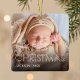 Un ornement moderne pour enfants de noël avec 2 photos de part et d'autre, le dicton "mon premier noël" dans un contour blanc moderne police, votre nom de bébé, et l'année.