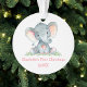 Première aquarelle de Noël Safari Eléphant rose sur l'ornement feuille de foune. Aquarelle Botanique Verdure. Texte rose. Ajouter un nom.