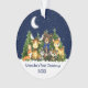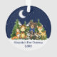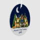 Première aquarelle de Noël pour bébé Animaux de forêt Animaux de forêt Pins Lune, Ciel étoilé et ornement de neige. Bébé Les animaux comprennent Ours avec Bleu Bow, Cerf, Moose, Raccoon, Lapin lapin, Renard et Chouette avec la végétation forestière. Ajouter un nom.