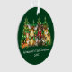 Première aquarelle de Noël de bébé Animaux de forêt Animaux de forêt Ornement. Bébé Les animaux comprennent Ours avec un Bow rouge, Cerf, Moose, Raccoon, Lapin lapin, Renard et Chouette avec la végétation forestière et les lampes à cordes de vacances. Ajouter un nom.
