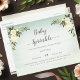 Invitation vos invités à une luxueuse douche à jets hydromassants avec ce bouquet de fleurs de rose blanche sur arrière - plan d'aquarelle verte. Bouquets dans chaque coin supérieur. Modèles créés pour vous. #babysprinkel