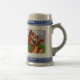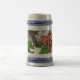 This is a ceramic beer stein-style coffee mug featuring a colorful Tom and Jerry cartoon design. The mug showcases Jerry the mouse prominently in the center, looking surprised or playful, with Tom the cat partially vis in the background. The stein is crafted in a classic German-style design with ornate blue detailing around the top and bottom rims und a sturdy handle for easy grip. The body of the mug has a glossy finish, making it both decorative and functional — perfekt for fans of the iconic cartoon series.
