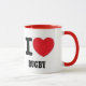 Becher i schließt rugby rotes Handgelenk in Zusammenhang mit dem praktischen Herzen auf, um jede unentbehrliche Getränkeart für den Fan rugby zu trinken