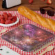 Ein Bett aus glänzenden Fantasy-Blume, ein einzigartiges leuchtendes Blumenwerk. Design für Ihre quadratischen Teller und mehr.