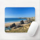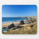 Den Strand bei Bedruthan übersehend, tritt auf die Nordküste von Cornwall, England.