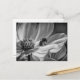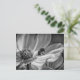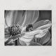 Ein Schwarzweißfoto auf einer Postkarte einer Biene auf einer Cosmo-Blume.
