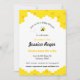 Babydusche Einladung in einem gelben Farbschema mit einer niedlichen Hummelabilderung. Dieses Design eignet sich perfekt für eine Mama-to-Bee-Kinderdusche.