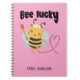 Persönliches "Bee Glück" Notebook mit Niedlichem Design einer glücklichen Biene, die mit einem herzförmigen Pfad und einem "Zauberstab" fliegt. Füllen Sie es mit Hoffnung, Kreativität oder was Sie wollen. Eine alltägliche Erinnerung des ersten Suchens nach Glück und Glück. Fügen Sie dem Cover Ihren Namen hinzu.