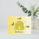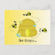 Ein niedliches Design mit einem Bienenstock mit drei kleinen buschenden Bienen und Blume. Sagt "Sei glücklich"...