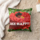 Niedliche Botschaft, "glücklich zu sein" mit einer geschäftigen Hummel, die Pollen aus einer hellen roten Blume sammelt.