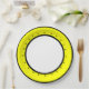 Hellgelbe Grenze mit geometrisch schwarzen Polka-Punkten. Schwarzer Kreis mit weißem Hintergrund. Spaß im Sommer. Design von TamiraZDesign.