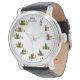 Uhr, Vintage Männeruhr mit schwarzem Lederarmband