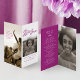 Einfache Taschengröße doppelseitige Keepake Tribute Gebet oder Gedicht-Karten, die Familien die Möglichkeit geben, eine Hommage wahre Erinnerung mit drei verschiedenen Fotos ihrer Lieben haben. Diese moderne, schlichte Weiß und Violett (Farbe ist eine der Farben, um Lupus zu symbolisieren, oder einfach für diejenigen, die lila Lilve) unvergessliche Tribute Beten oder Message Cards, kann personalisiert werden mit drei eigenen speziellen Fotos, Lebensdetails, Gebet oder Gedicht auf der Innenseite und kurze Botschaft oder Zitat auf der Rückseite. Von Sarah Trett für www.mylittleeden.com entworfen