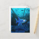 Postkarte zeigt einen etwas besorgten Cartoon Hai schwimmen herum. Illustration ©2019 Michael C. Paul https://mikepaulart.com
