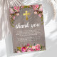 Begräbnisdanken Sie notieren auf einer Karte ist eine einfache Möglichkeit, um denjenigen zu danken, die Sie während Ihrer Zeit des Gehörs unterstützt haben. Ein hübsches Beileid bedanken Sie sich bei Ihrer Notiz mit einem rustikalen Holzhintergrund, eleganten rosa Aquarellfarben-Blume, einem Imitat Goldfolie Kreuz und einem Dankeschön-Template, das leicht zu personalisieren ist.
