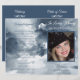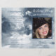 Dieses Design verfügt über wasserfarbene Wolken mit einem Rahmen für ein Foto auf der Vorderseite und koordiniert die Farbe auf der Rückseite mit Raum für die Service-Details und Obituary. (Dies soll in der Mitte gefaltet werden)