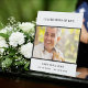 Mit dem Text: Feier des Lebens. Personalisieren und hinzufügen eines Fotos, Namens und Datums. Ein weißer Hintergrund, schwarzer Text. Ein Rahmen aus schwarzem Foto.