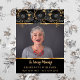 Mit dem Text: In Love Memory. Personalisieren und hinzufügen eines Fotos, Namens und Datums. Klassischer schwarzer Hintergrund, goldener Text. Die Blume sind mit schwarzen und goldenen Rose geschmückt.