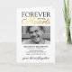 Elegantes Beerdigungsprogramm mit einem stylischen schwarzen Hintergrund, der in jede beliebige Farbe verändert werden kann, ein Foto von Ihrer verlorenen Lieben, der Text "ewig in unseren Herzen", die Begräbnisdetails, ein Brief, die Dienstordnung, die Einzelheiten des geweckt, ein anderes Foto auf der Rückseite, und ein personalisierter Dankeschön.