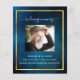 Ein elegantes zweiseitiges Programm. Ein dunkelblauer Himmel als Hintergrund, ein goldenes Imitat und Platz für ein Foto. Personalisieren und hinzufügen von Namen, Daten und Text.