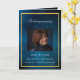 Ein elegantes 4-seitiges Programm. Ein dunkelblauer Himmel als Hintergrund, ein goldenes Imitat und Platz für Ihr Foto auf der Vorderseite. Personalisieren und hinzufügen von Namen, Daten und Text. Weißer Text.