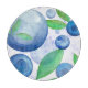 Eine zarte Aquarellmalerei mit Blaubeeren mit Blätter. Hübsches Fruchtdesign in Blau, Weiß und Grün.