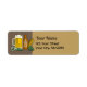 Bier-Darstellung. Flasche, Glas, Öfen, Hopfen und Gerste. Benutzerdefinierte Hintergrundfarbe. Benutzerdefinierter Text für Name und Adresse.