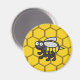Eine lächelnde Honigbiene, die auf einem Wabenmuster stehend ist.