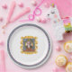 Feiern Sie Beethoven! Aus einer originalen Kunstserie von ZoeSPEAK von Tellern klassischer Musiksammler, zeigen diese Paper Teller ein Portrait des Komponisten Ludwig van Beethoven. Das Portrait ist eine handgetönte Ätzung, umgeben von einer Illustration eines verziert ovalen goldenen Rahmens. Der Rahmen ist auf einem Tapetenhintergrund mit gelben Sonnen und aufziehenden geflügelten Spirituosen gegen ein mittleres Blau. Unter dem roten Portrait ist der Name des Komponisten zu sehen. Die Tapete ist umgeben von mehr goldenen Bändern, in der Mitte der Platte vor einem weißen Hintergrund. Es gibt eine mittelblaue Band mit geflügelten Spirituosen und einem roten Rand um den Tellerrand.
