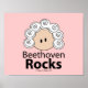 Cute and funny Chrissy H. Studios original design on composer shirts, clothing and merchandise with a cartoon Ludwig van Beethoven that says Beethoven Rocks. Customize this poster with any background and border color you want! A fun classical music gift for a musician, music teacher or student, conductor, symphony or orchestra member.