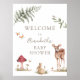 Herzlich willkommen in Ihrer Babydusche mit diesem hübschen Schild, das einen Kranz aus Pflanzen, Waldtieren und Wildblumen aufweist. Fügen Sie den Ehrengast mit dem Namen, dem Duschdatum und dem persönlichen Willkommenstext unter Verwendung der angegebenen Felder hinzu.