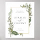 Botanisches Foliage Goldener Rahmen, Hochzeitsplakat. Aquarellgrün mit goldenem Rahmen aus Imitaten.