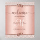 Dieses Poster ist ein großes Begrüßungszeichen, um die Gäste bei Ihrer Hochzeitsfeier zu begrüßen. Die Imitate Rose Gold Glitzer Damast oben und unten Rahmen der eleganten simulierten Rose Gold metallische Hintergrund, mit trendigem Drehtext, und elegante Monogramm der Braut und Bräutigam. Finden Sie viele weitere passende Produkte in der Sammlung.
