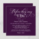 Elegante und schicke Hochzeitswillkommene Party Einladung mit einer Kalligraphie-Skript Titel : Bevor sie "I Do" sagen. Quadratisches Design. Eggpflanze lila-weiß Farbschema.