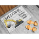 Willkommen auf der Zuhause "Ihr Familienname" oder wechseln Sie zu einem Firmennamen oder einer Firma. Eine Begrüßungsmatte zum Thema Bagger für den Schwermaschinenbetreiber. Personalisieren Sie den Familiennamen.