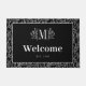 mit Monogramm Türmatte mit anfänglich von Hand gezeichnet Grün und schwarzem Hintergrund mit gemustertem Rahmen mit viel Grün in Schwarz und Weiß. Willkommen in einem kühnen Schriftart! Fügen Sie das Jahr hinzu, in dem Ihre Familie gegründet wurde. Der gesamte Text ist anpassbar.