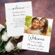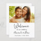 Dieses Blatt eignet sich perfekt, um Ihren besonderen Tag zu feiern, und wünscht, dass Ihre Gäste willkommen sind. Auf der Vorderseite: Das Blatt hat einen eleganten, weißen Hintergrund mit einem schwarz-modernen Schreibstil-Schriftart für die Namen. Personalisieren Sie Ihr eigenes Foto. Zurück: das Programm, Zeitleiste des Tages.