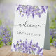 Ein Willkommensschild für ein Party. Weiß, mit Aquarellblumen und Blume geschmückt. Personalisieren Sie Ihren Namen und fügen Sie ihn hinzu. Schwarze Buchstaben.