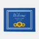 Genießen Sie dieses elegante Monogramm Begrüßungstor auf einem blauen Hintergrund. Ein einfacher weißer Rahmen und eine weiße, anpassbare Schrift erlauben es Ihnen, Ihre eigenen Informationen hinzuzufügen. Gelbe Sonnenblumen verleihen diesem Objekt einen rustikalen Stil, der es perfekt macht, um Gäste zu Ihrem Zuhause oder Ferienhaus zu empfangen.