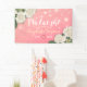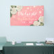 Begrüßung Willkommensbanner Vorlagen - Elegante weiße Wasserfarbe Hydrangea Blume und String Lights auf rosa strahlenden Hintergrund. Ein perfektes Design für Ihren großen Tag! Alle Textstile, Farben, Größen können an Ihre Bedürfnisse angepasst werden.