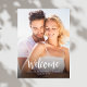 Dieses Design ist mit einem Begrüßungsschild, einem einfachen, klassischen Typografie, Foto-Fotografie, einem eleganten, klassischen, minimalistischen, minimalistischen, kalligraphischen Schrift ausgestattet, ideal für Probe-Dinner-Begrüßungsschild.