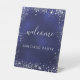 Begrüßung mit blauem Silbernamenskript Sockelschild