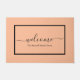 Elegante Begrüßungstür mit einem schwarzen Skript auf einem trendigen pfirsichfarbenen Hintergrund. Personalisieren Sie Ihre Daten mit Ihrem Familiennamen oder Text.