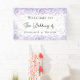 Ein stilvoller weißer Hintergrund. Mit violettem, lavendelfarbenem Konfetti dekoriert. Personalisieren Sie Ihre Namen und fügen Sie sie hinzu.