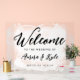 Akryllisches Hochzeitswillkommensschild mit schwarzen Schriftart gegen eine Weiße Wasserfarbe für ein durchsichtiges Aussehen. Willkommen und Ihre Namen in einem charmanten Skript. Weißes Aquarell-Begrüßungsschild personalisiert mit Ihren Namen, Hochzeitstermin und Hochzeitsort. Der gesamte Text ist auf Ihre Bedürfnisse zugeschnitten und kann an Anzug angepasst werden.