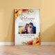 Elegantes Brennen Orangenfarben Blütenblüte Willkommensplakat für Ihre Herbst/Herbst Hochzeit. Dieses Schild ist personalisiert mit einem besonderen Foto und Text der Verlobung "Willkommen bei unserer Hochzeit." Der Name der Braut und des Bräutigams und ihr Hochzeitstermin sind unten auf dem Papier gedruckt.