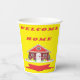 Begrüßung von Zuhause-Design, hellgelb und rot Pappbecher