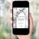 Ein großer Marmorbogen mit Rose und Blumenbehängen. Personalisieren Sie Ihre Namen und fügen Sie sie hinzu.