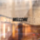 Willkommen Banner Band, Fensterheber durch den Business Card Store.
