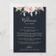 Der elegante, rosa blütenfarbene Begrüßungsbrief ist perfekt für eine moderne Hochzeit. Das Design besteht aus handgezeichnet, rosa, blüten Rose und Pfannkuchen mit grünen und grauen Blätter im dunkelblauen Hintergrund und inspiriere die natürliche Schönheit. Personalisieren Sie die Front mit einer Begrüßungsbotschaft für Ihre Gäste und Ihren Namen. Personalisieren Sie den Rücken mit dem Veranstaltungskalender und anderen nützlichen Informationen.